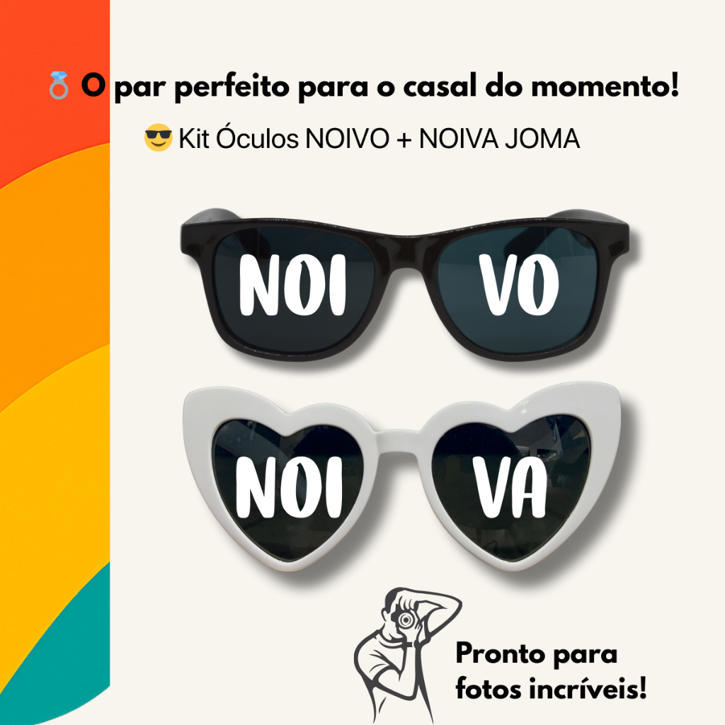 | Kit 2 Óculos Escuro JOMA Para Casamento Noivo e Noiva Casei Com Pro... este produto | R$ 29,70 | 10% | 4.9/5 | 214 |