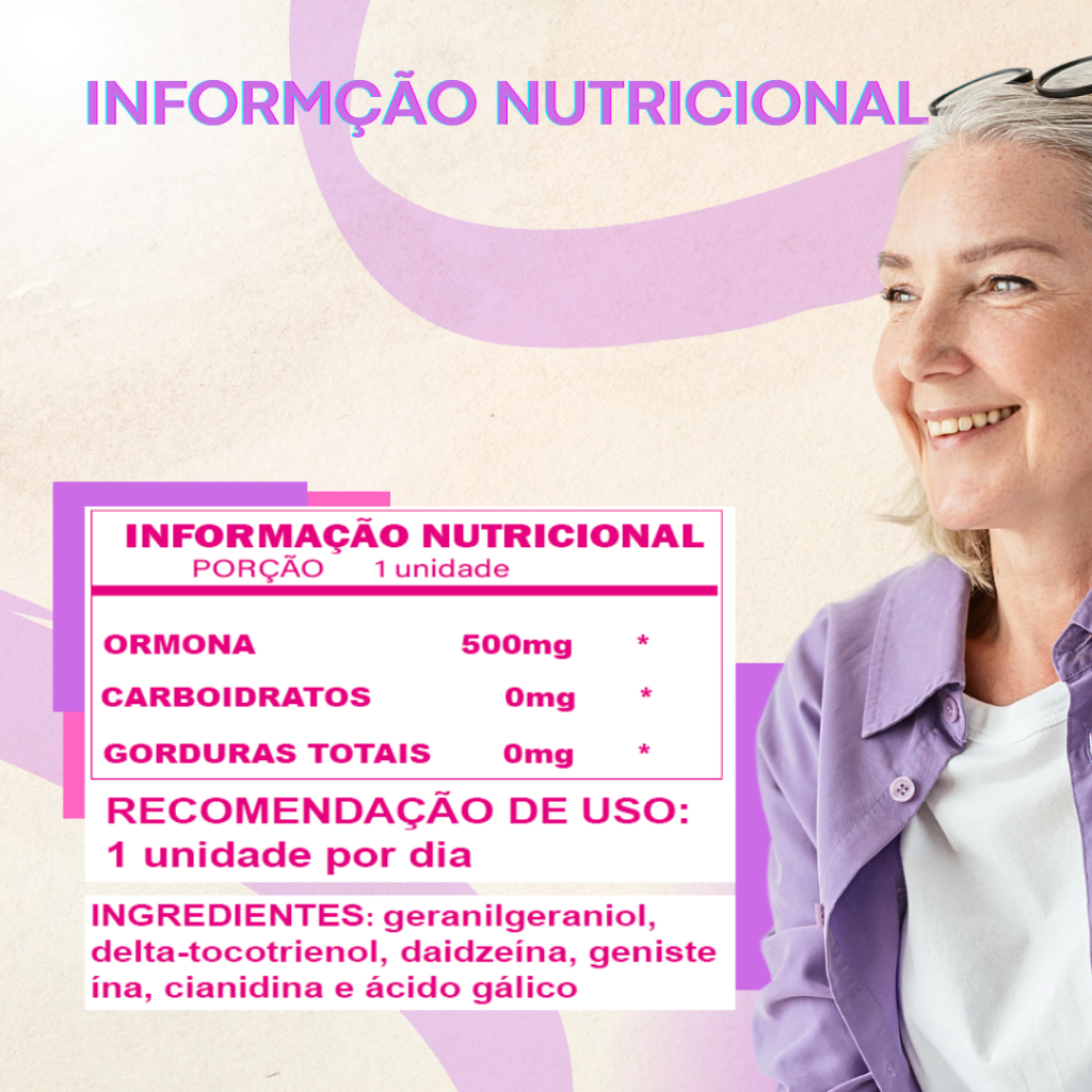 Ormona Vivamax 2 potes com 60 unidades cada Envio imediato. O Ormona é um suplemento natural com propriedades anti-inflamatórias e antioxidantes, que visa a modulação hormonal feminina durante o climatério e a menopausa. Seus benefícios incluem a amenização de sintomas como fogachos e ondas de calor, o suporte à saúde óssea e cardiovascular, a melhora do ressecamento vaginal e da libido, e a proteção contra o envelhecimento precoce.