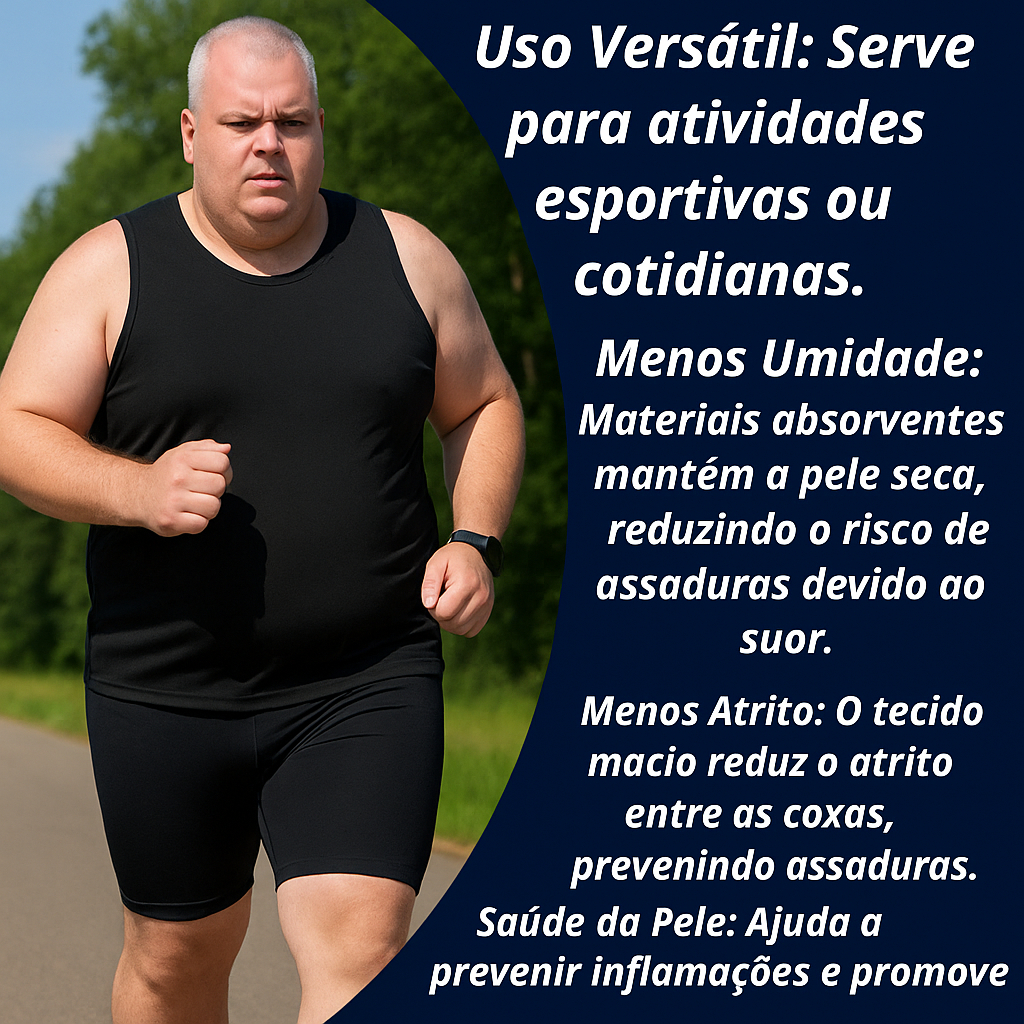 BERMUDA TÉRMICA PREMIUM – ALTA COMPRESSÃO TAMANHOS DISPONÍVEIS P (Pequeno): 76 a 84 cm de cintura M (Médio): 85 a 92 cm de cintura G (Grande): 93 a 105 cm de cintura GG (Extra Grande): 106 a 118 cm de cintura Recomendamos medir a cintura para escolher o tamanho ideal. CONFORTO, PERFORMANCE E PROTEÇÃO A Bermuda Térmica Premium foi desenvolvida para oferecer melhor desempenho, conforto e liberdade de movimento durante qualquer atividade física ou no uso diário. BENEFÍCIOS Alta compressão para melhor suporte muscular e desempenho Controle térmico que ajuda a regular a temperatura corporal Proteção contra assaduras e atritos, proporcionando mais conforto Tecido respirável com secagem rápida, mantendo a pele seca Versátil, ideal para corrida, academia, ciclismo, caminhadas e uso diário INFORMAÇÕES IMPORTANTES Envio imediato Estoque limitado Garanta já a sua e treine com mais conforto e desempenho.