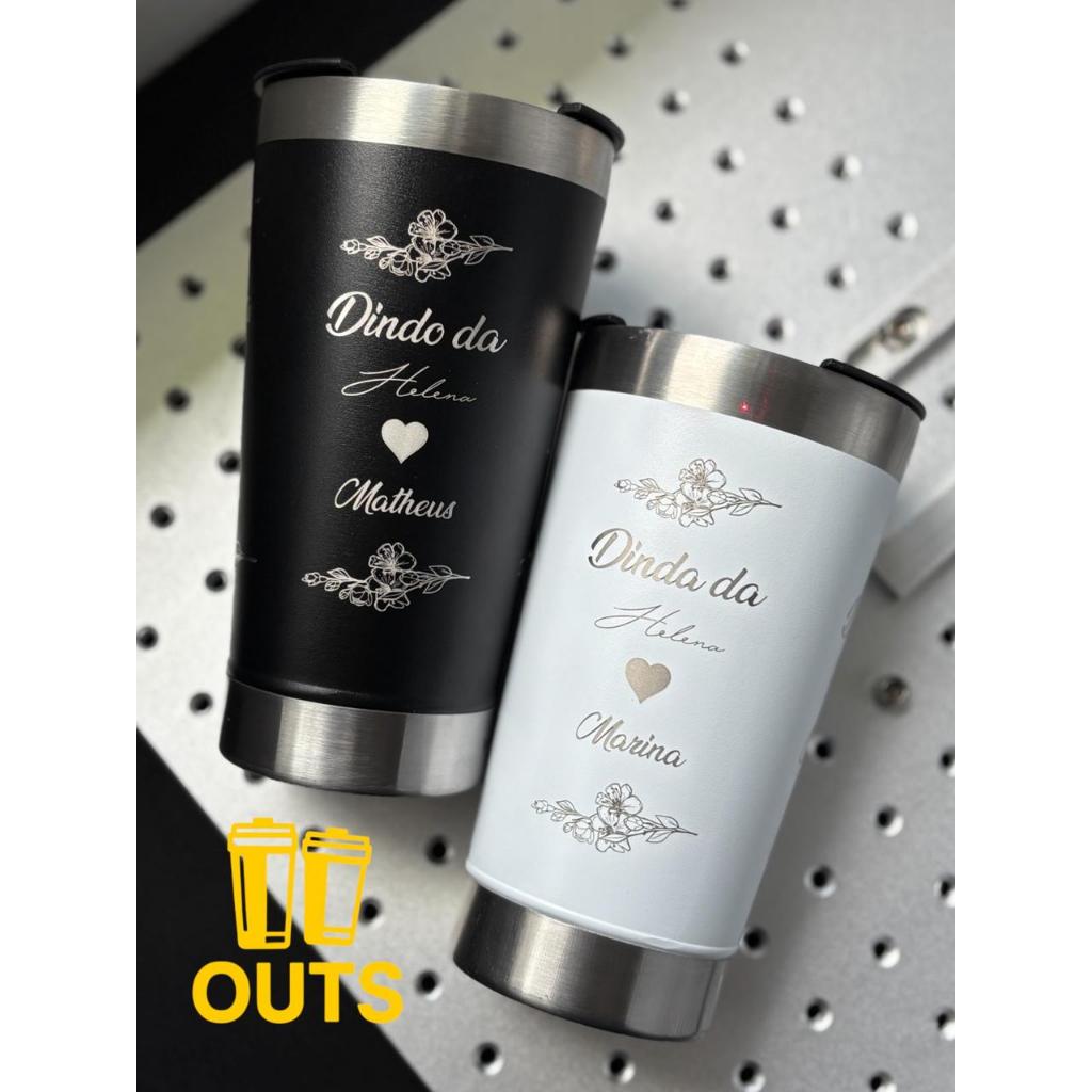 Kit 2 OU 1 Copo Térmico Personalizado 473ml Gravado a Laser Dinda e Dindo OU Madrina e Padrinho