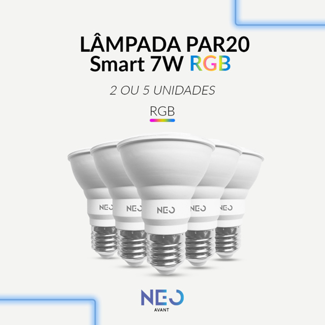 Modernize a iluminação dos seus ambientes com a Lâmpada LED PAR20 Smart da linha Avant Neo. Ideal para quem busca uma iluminação de destaque, versátil e conectada, esta lâmpada permite criar cenários personalizados para cada momento. PROPRIEDADES: - Kit Contendo 2 ou 5 Unidades - Potência: 7W - Temperatura de Cor: Ajustável de 2700K a 6500K + RGB - Comando de voz com Alexa ou Google Assistente. - Aplicativo Avant Neo - Modelo 110v/220v Bivolt - Modelo com Wi-Fi 2.4 GHz - vida útil prolongada de até 25.000 horas. - Função de Programar Horários - Acabamento Premium - Temporizador - Fácil Instalação Com a Lâmpada Smart PAR20, você tem o controle total da iluminação na palma da sua mão. Utilizando o aplicativo Avant, disponível para Android e iOS, ou por comandos de voz com o Google Assistente, é possível personalizar seus ambientes de maneira prática. Escolha entre mais de 16 milhões de cores no modo RGB ou ajuste a temperatura do branco, que varia de 2700K (luz quente) a 6500K (luz fria). Crie cenas, programe horários para acender e apagar as luzes e explore um universo de possibilidades para uma casa mais inteligente e decorada. CARACTERÍSTICAS DE FUNCIONAMENTO: A instalação é simples e a conexão é feita diretamente com a sua rede Wi-Fi de 2.4GHz, sem a necessidade de um hub ou central de comando. Além de selecionar a cor, você pode controlar a intensidade da luz (dimerização) por meio do aplicativo, adequando a luminosidade para cada atividade. A lâmpada é indicada para uso em ambientes internos, sendo perfeita para destacar quadros, texturas de parede e objetos de decoração em salas, corredores e lojas. ESPECIFICAÇÕES TÉCNICAS E COMERCIAIS: Fluxo Luminoso: 600 lm Base de Encaixe: E27 Índice de Proteção: IP20 (uso interno) Material: Alumínio e Policarbonato Garantia Oficial da Marca de 12 meses para defeitos de fabricação. Sobre a Marca: A Avant Neo se destaca por oferecer o que há de mais moderno em iluminação, com soluções que combinam versatilidade, design e inovação. Sua linha inteligente foi desenvolvida para proporcionar controle total e praticidade, transformando a interação com os ambientes da sua casa.
