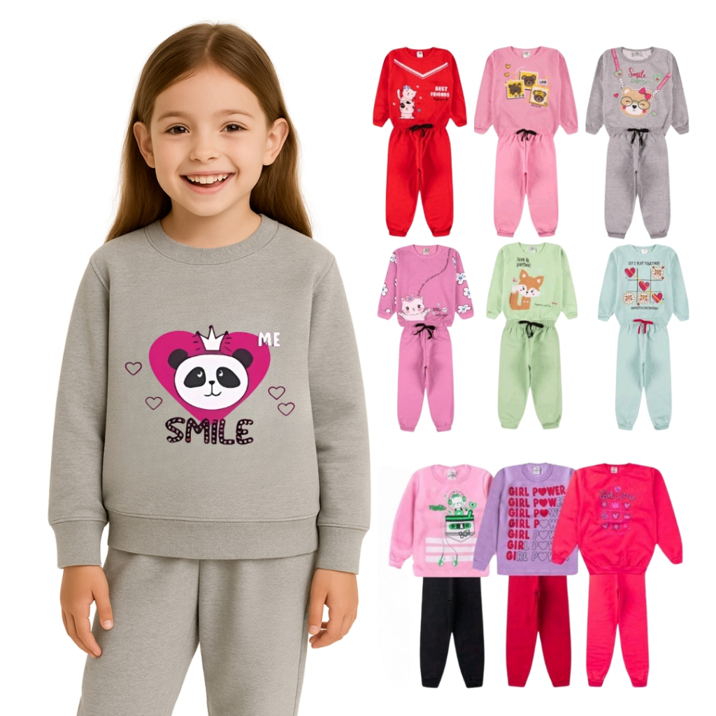 Kit 2 ou 6 Peças Conjunto Inverno Moletom Infantil Menina 1 ao 16 Feminino Inverno