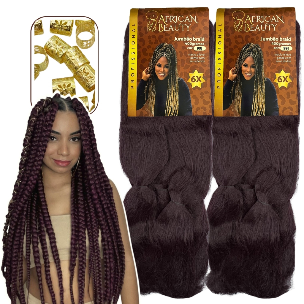 Kit 2 Pacotes Cabelo Jumbo Jumbão Box Braids African Beauty + Anéis