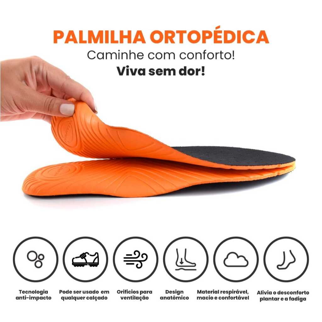 Soft Shop Apresenta: Palmilha Ortopédica Em Gel Muitas pessoas subestimam a importância de uma palmilha de qualidade, sem perceber que o principal culpado pelas dores nos pés é o desconforto causado por não ter uma Palmilha de Qualidade! Caracteristicas: - Tecnologia Anti-Impacto - Orificios Para Ventilação - Material Respirável, Macio & Confortável - Pode Ser Usada Em Qualquer Calçado - Design Anatômico Dos Pés - Alivia o Desconforto e a Fadiga Oque Acompanha o Produto? - 2 Pares Ortopédicos Numeração Palmilha Ortopédica: 33/34 35/36 37/38 39/40 41/42 43/44 45/46 Forma Padrão
