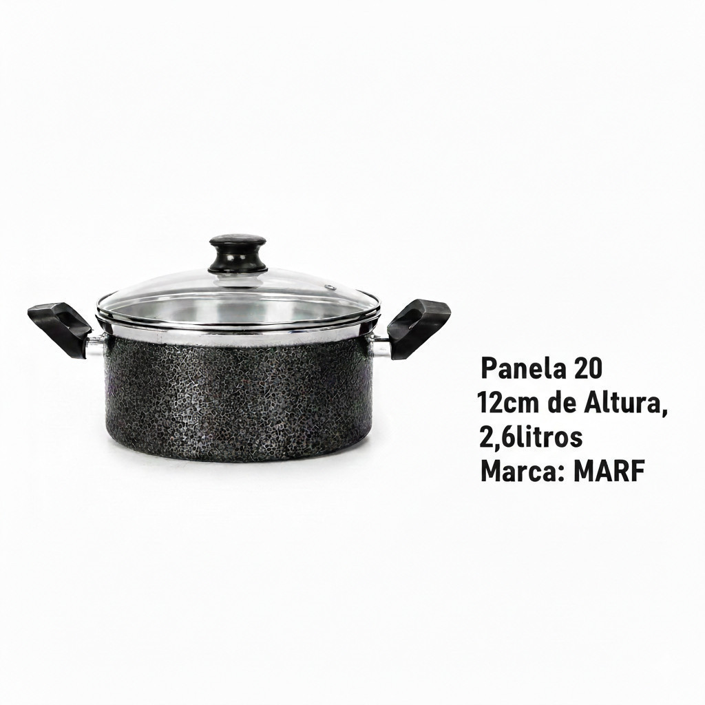 Kit 3 Panelas Caçarola Alta Reforçada com Tampa de Vidro N°18 e 20 Preto com Espátulas – Resistência, Elegância e Versatilidade para o Dia a Dia O Kit de Panelas Caçarola Alta Reforçada é a escolha ideal para quem busca praticidade, durabilidade e um visual moderno para a cozinha. Composto por três panelas nos tamanhos mais utilizados no dia a dia, este conjunto atende perfeitamente desde o preparo de refeições simples até receitas mais elaboradas para toda a família. Produzidas em alumínio reforçado de alta qualidade, as caçarolas garantem aquecimento rápido e distribuição uniforme do calor, evitando que os alimentos cozinhem de forma desigual. O revestimento interno lixado facilita o preparo das receitas, impede que os alimentos grudem e reduz a necessidade de óleo, proporcionando refeições mais saudáveis e uma limpeza muito mais prática. O acabamento externo em pintura eletrostática na cor preta confere ao kit um visual elegante, moderno e altamente resistente ao calor, ao uso contínuo e ao desgaste do dia a dia. Um conjunto que combina perfeitamente com cozinhas modernas, clássicas ou minimalistas. As panelas acompanham tampas de vidro temperado com saída de vapor, permitindo acompanhar o preparo dos alimentos sem precisar abrir, preservando sabor, aroma e nutrientes. As caçarolas possuem formato alto, ideal para o preparo de arroz, feijão, massas, legumes, carnes, molhos, sopas, ensopados e receitas que exigem maior volume. O kit acompanha ainda espátulas resistentes, ideais para uso em superfícies antiaderentes, evitando riscos e prolongando a vida útil das panelas. Um conjunto completo, funcional e pensado para facilitar a rotina na cozinha. Composição do kit Caçarola alta reforçada número 18 Caçarola alta reforçada número 20 Tampas de vidro temperado com respiro de vapor Espátulas resistentes Principais benefícios do kit de panelas Alumínio reforçado com excelente condução de calor Revestimento alumínio de alta qualidade Menor uso de óleo no preparo das refeições Cozimento rápido e uniforme Formato alto ideal para receitas variadas Pintura eletrostática resistente na cor preta Tampas de vidro que permitem visualização do preparo Fácil de limpar e ideal para uso diário Espátulas inclusas que não danificam o antiaderente Especificações técnicas Material das panelas: Alumínio reforçado Revestimento interno: Alumínio Acabamento externo: Pintura eletrostática preta Tampas: Vidro temperado com saída de vapor Tamanhos:18 cm e 20 cm Compatibilidade: Fogões a gás e elétricos Não compatível com fogão por indução Indicação de uso Este kit é ideal para quem está montando ou renovando a cozinha, oferecendo excelente custo-benefício, resistência e versatilidade. Também é uma ótima opção para presentear em ocasiões como casamento, chá de casa nova ou mudança, unindo funcionalidade, beleza e praticidade em um único conjunto. Invista em mais eficiência, organização e elegância com o Kit 2 Panelas Caçarola Alta Reforçada com Tampa de Vidro e Espátulas. Um conjunto completo para transformar sua experiência na cozinha todos os dias. ---
