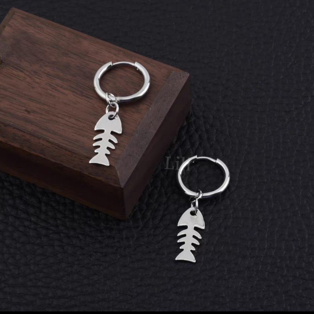 Kit 2 Pares Brinco Punk de Argola Com Pingente Peixe
