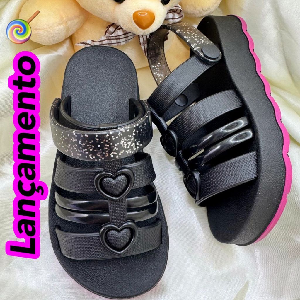 Kit 2 Pares de Sandálias Infantil Menina Fivela Glitter e Duplo Calce Chinelo Coração Estilosa