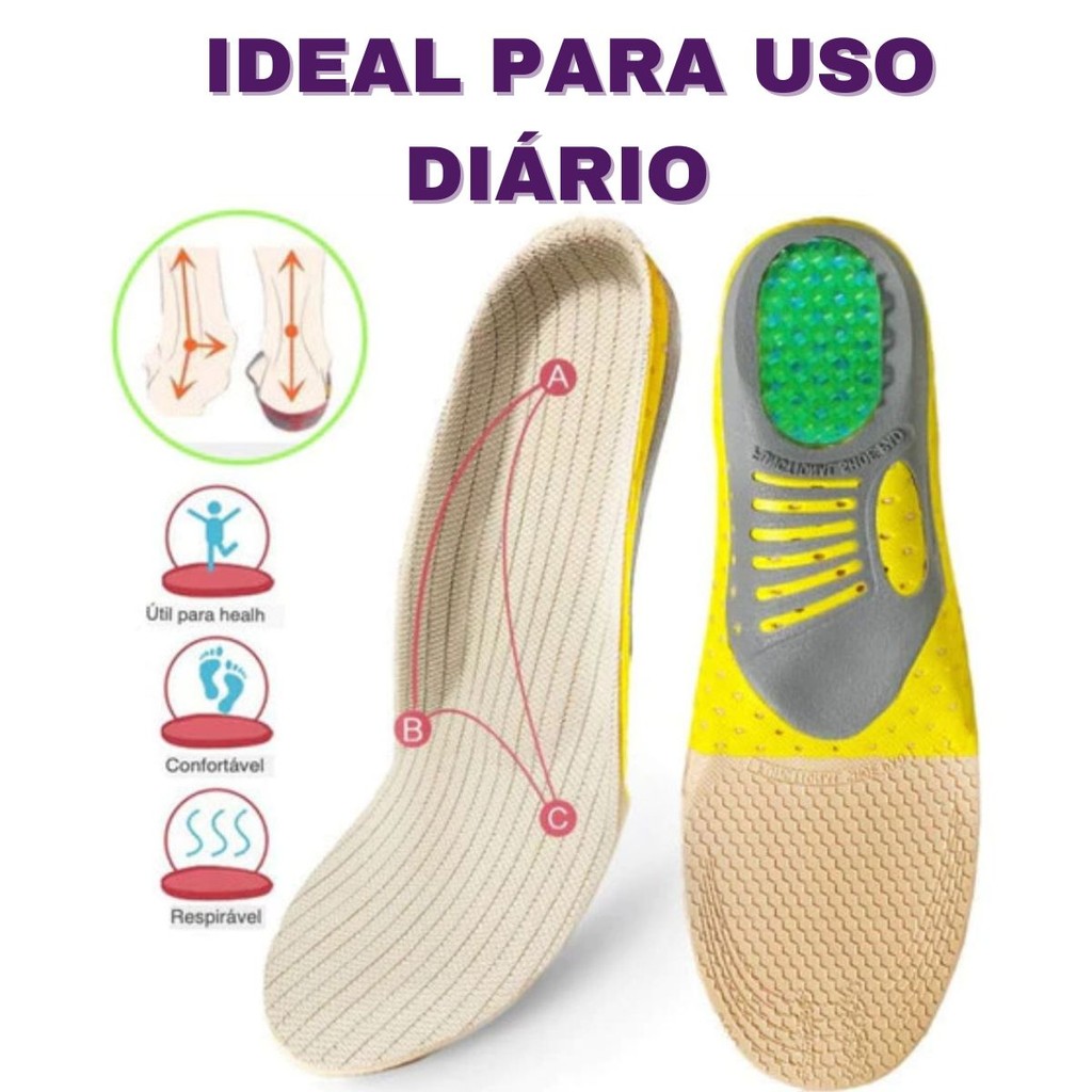 Kit 2 Pares Palmilha Ortopédica Fascite Esporão Pé Chato Dor