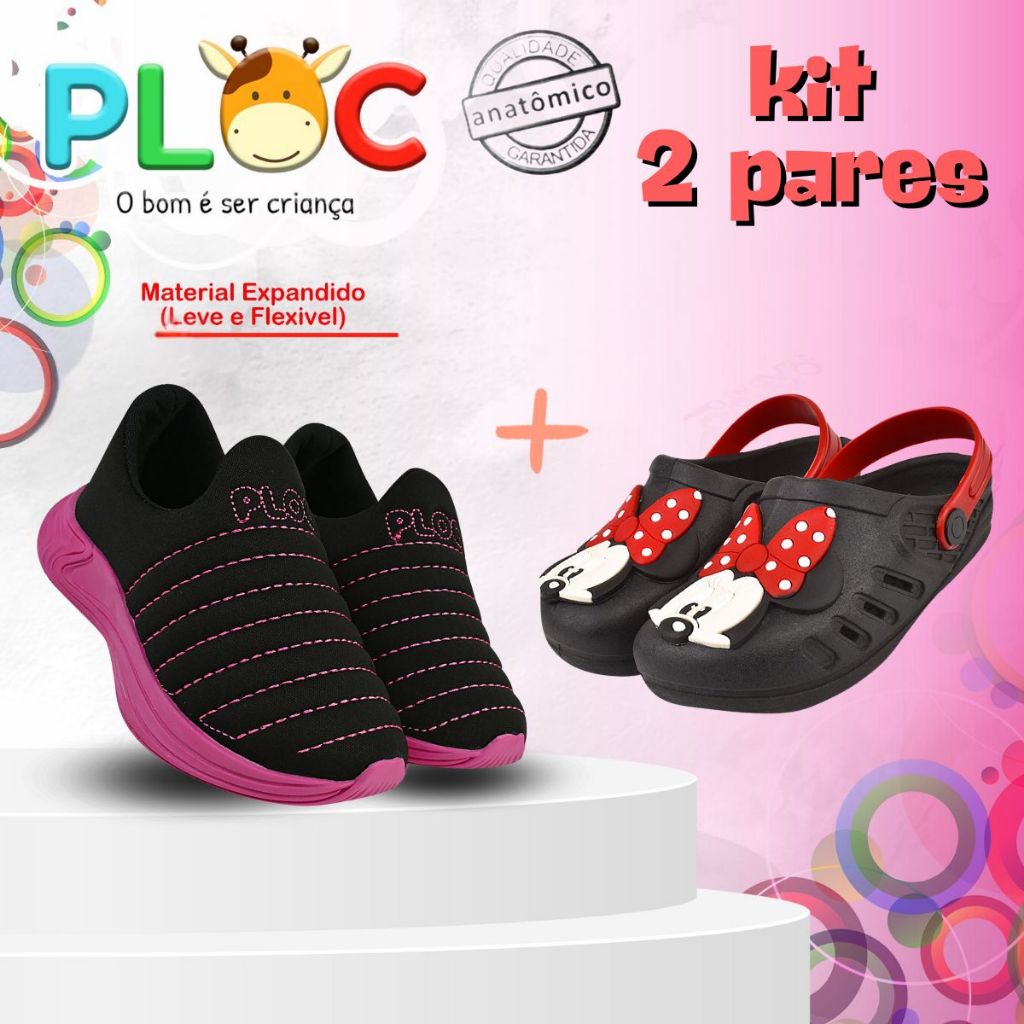 *KIT COM 2 PARES DE TÊNIS COM A MESMA NUMERAÇÃO, SENDO 1 TÊNIS PLOC + 1 SANDÁLIA CONFORME FOTO ---------------------------------------------------------------------------------------------------------------------------------------------------------------------------------------------------- Características do Produto: Nome: PLOC Indicado para: Dia a Dia; Ocasião: Dia a Dia; Material: Sintético Textil; Material Interno: Têxtil; Altura do Cano: Cano Baixo; Solado: Micro Expandido Caixa: Personalizada PLOC conforme imagem Tamanho: Observar a tabela de numerações e idade antes de efetuar a compra. Garantia do Fabricante: Contra defeito de fabricação; Origem: Nacional; Marca: Ploc DÚVIDAS FREQUENTES: 1 - O produto é original da marca PLOC?. Resposta: Sim, nossos Produtos são Novos e Originais, enviamos embalados com a nota fiscal. Nossa empresa tem autorização das principais marcas para a revenda dos seus produtos, trabalhamos com várias modelos de calçados e acessórios femininos. 2 - Tem os produtos a pronta entrega?. Em quanto tempo o produto será enviado?. Resposta: Sim, todos os produtos disponíveis aqui são a pronta entrega e com envio imediato.