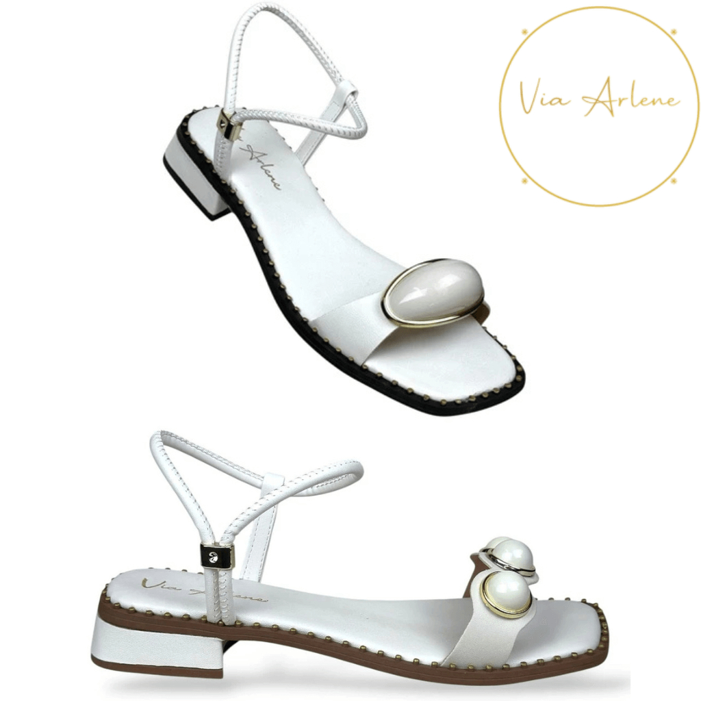 Kit 2 pares Sandália Feminina Enfeite Esfera e Lesma Salto Baixo Elegante Traseira Aberta Ajustável