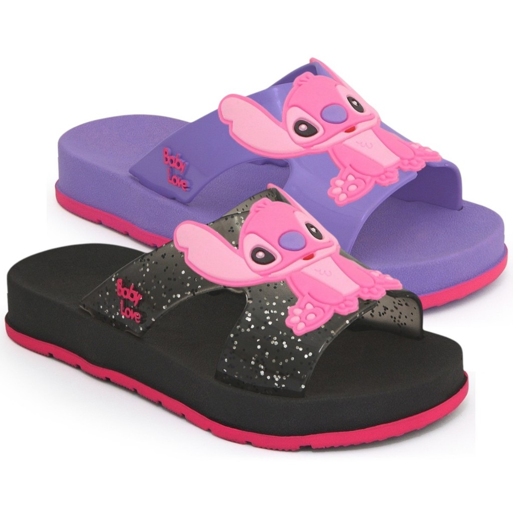 Kit 2 Pares Sandália Infantil Stitch Feminina Papete Moderna Confortável