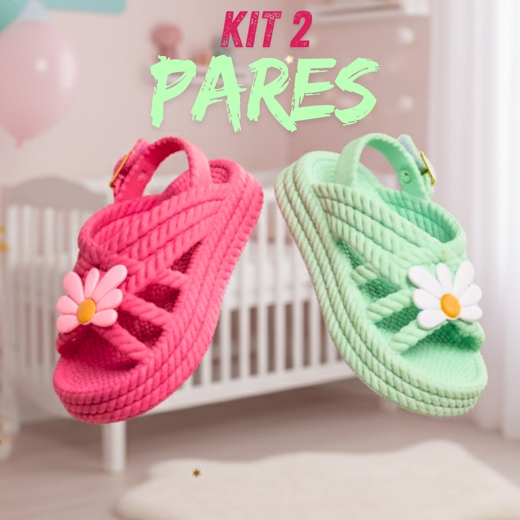 Kit 2 Pares Sandália Papete Infantil Margarida Leve Baby Trança