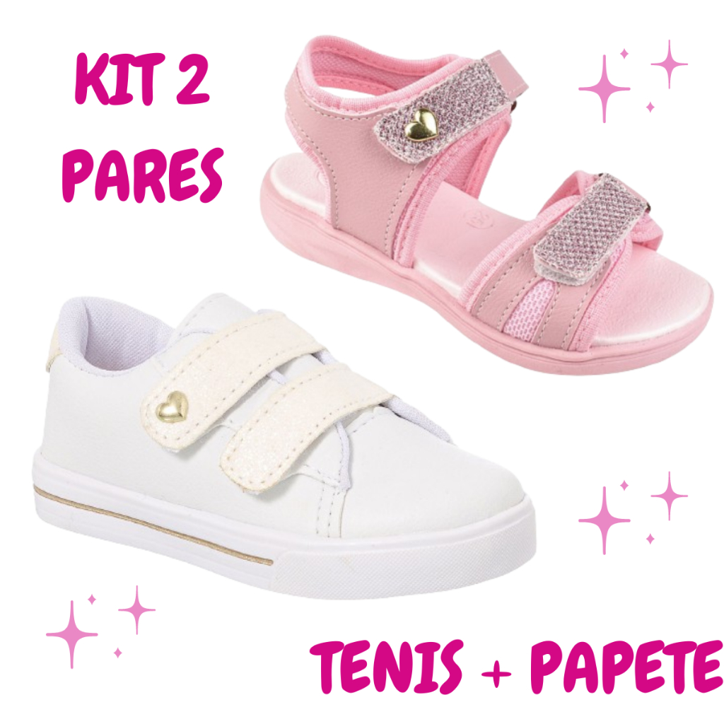 kit 2 Pares Sandália Papete MeninaTênis Infantil Estiloso Promoção Confortável Moda