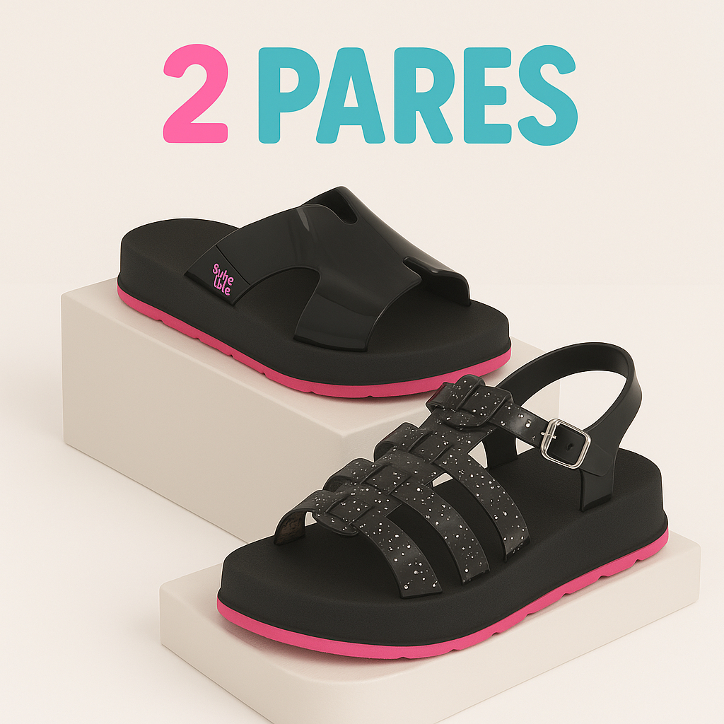 ✨ Kit 2 Pares de Sandálias Infantis Femininas ✨ Conforto, estilo e praticidade em um só kit! São dois modelos lindos para sua princesa arrasar em qualquer ocasião. 👡 Detalhes do Produto: Kit com 2 pares de sandálias infantis. Modelos modernos com glitter que dão um charme especial. Leves e confortáveis, ideais para o dia a dia. Solado antiderrapante, oferecendo segurança ao caminhar. Design versátil para combinar com vários looks. Fácil de calçar e limpar, perfeito para a rotina das crianças. 🎀 Por que escolher este kit? Além de lindas, as sandálias foram pensadas para garantir conforto e segurança, sem abrir mão da delicadeza e estilo que as meninas adoram. 👉 Garanta já esse kit e dê à sua pequena o mix perfeito de conforto, moda e diversão!