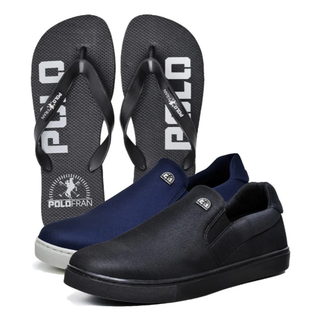 Kit 2 Pares Sapatenis Masculino Polo Fran Slip On Casual Tenis Elastico Bali + Chinelo