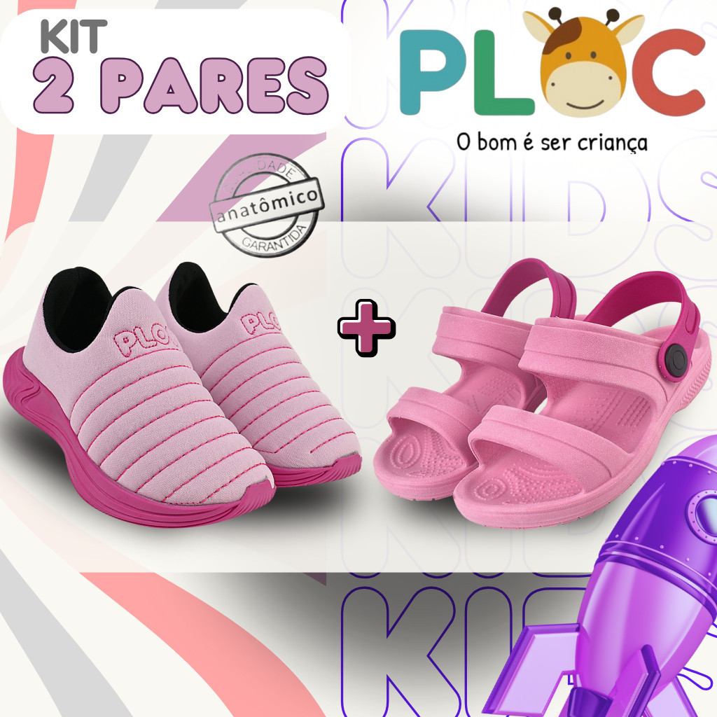 Kit 2 Pares: Tênis Calce Fácil Colors Ploc Menina + Papete Rosa