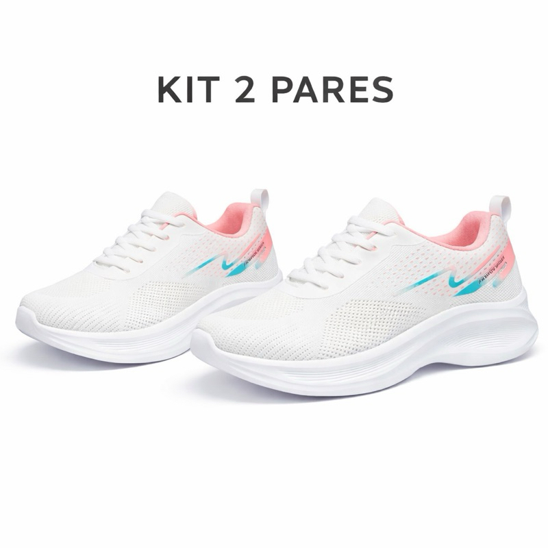 Kit 2 Pares Tênis Esportivo Feminino Leve Confortável Para Caminhada e Academia