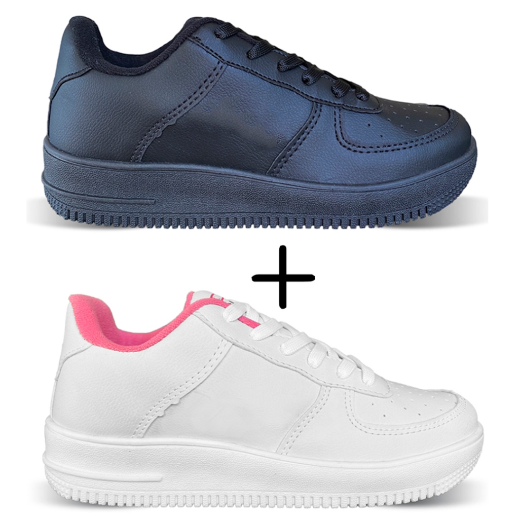 ‼️‼️ATENÇÃO: CASO QUEIRA COMBINAÇÕES DIFERENTES DE NUMERO E CORES NOS KITS É SO NOS AVISAR APÓS A COMPRA NO CHAT ‼️‼️ ✅TODOS PRONTA ENTREGA ✅ ENVIO IMEDIATO ✅GARANTIA DE 7 DIAS ✅FOTOS TIRADAS POR NOS MESMOS >>> KIT 2 PARES DE TENIS<<< )>>> MEDIDAS DA PALMILHA DO TENIS PARA TE AJUDAR NA COMPRA<<<( 34- 23cm 35- 23,5cm 36- 24,5cm 37- 25cm 38- 26cm 39- 26,5cm 40- 27cm 41- 27,5cm 42- 28,5cm 43- 29cm 👉 Calçado qualidade premium em excelência 👉 Este tenis é para quem procura qualidade e conforto com preço justo! 👉 Para Academia, Caminhada, Dia a Dia, Corrida... Genero: Masculino E Feminino Produto para Academia, Corrida, Caminhada... Material Exterior: Couro sintetico Material da palmilha: EVA Fechamento: Cadarço Solado: Leve e Macio Cores: Preto, Branco, PinkBranco ⚠DÚVIDAS FREQUENTES⚠ ✅O tenis é identico ao da foto? Garantimos que o tenis é identico ao da foto, caso o tenis chegue e você não ache identico, você tem 7 dias para nos devolver sem custo nenhum. ✅ O tenis vai na caixa? Sim os tenis vão na caixa da marca ✅Os tenis possuem garantia? Sim. Possuem garantia de 7 dias. ✅ O produto está disponivel a pronta entrega? Sim. Todos nossos produtos são de pronta entrega. ✅ Qual prazo de envio? Após a confirmação do pagamento, enviamos no mesmo dia. ✅ Os produtos são novos? Claro. Só trabalhamos com produtos novos. ✅ O produto tem qualidade? Sim. Trabalhamos com os melhores produtos do mercado, e por isso te damos 7 dias de garantia. OBS: CASO TENHA QUALQUER DÚVIDA, NOS MANDE UMA MENSAGEM QUE VAMOS TE RESPONDER EM MENOS DE 10 MINUTOS! Obrigado pela atenção. Boas compras!