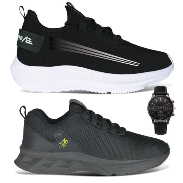| Kit 2 pares Tênis Masculino Leve Confortável Academia + Relógio este produto | R$ 159,90 | — | 4.6/5 | — |