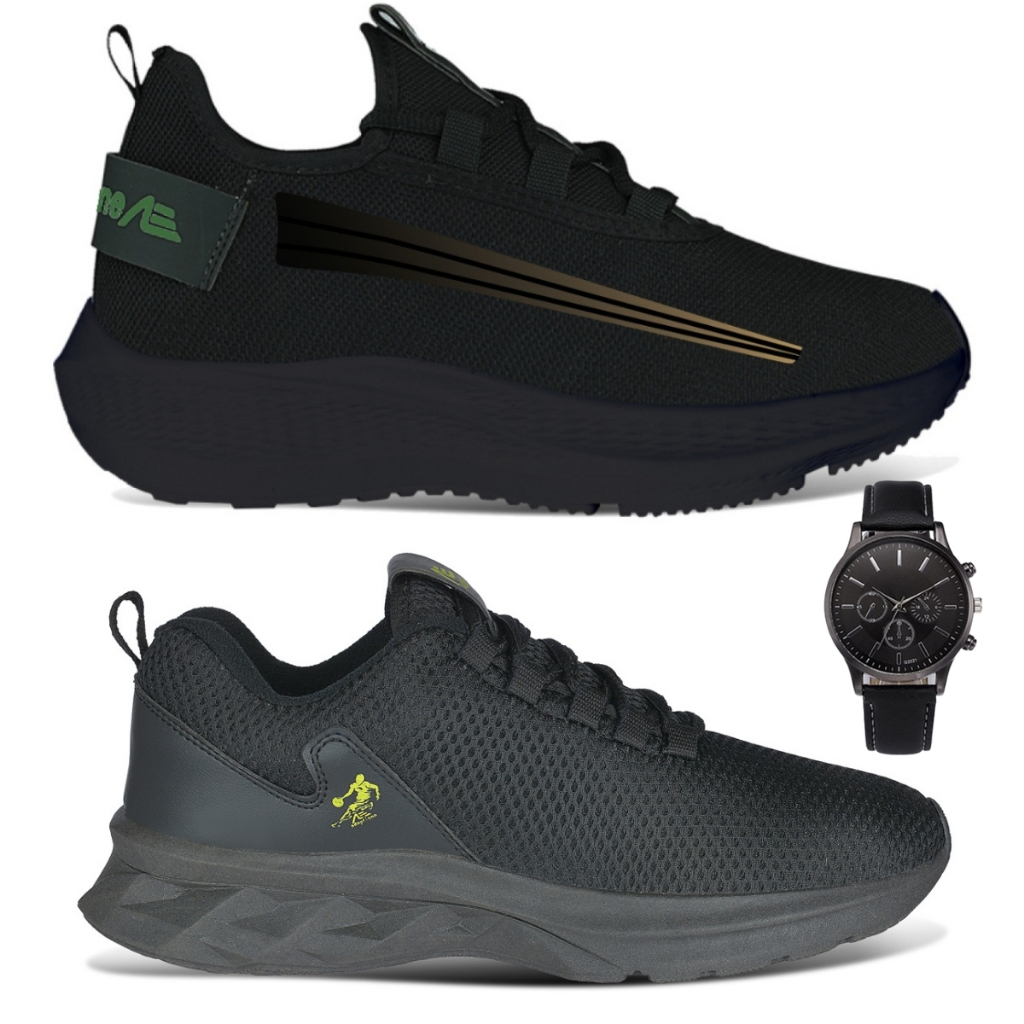 Kit 2 pares Tênis Masculino Leve Confortável Academia + Relógio