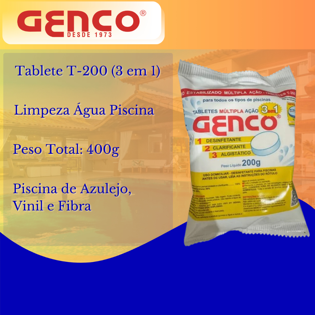Kit 2 Pastilhas Cloro Genco 3 Em 1 Tablete 200g Múltipla Ação Original