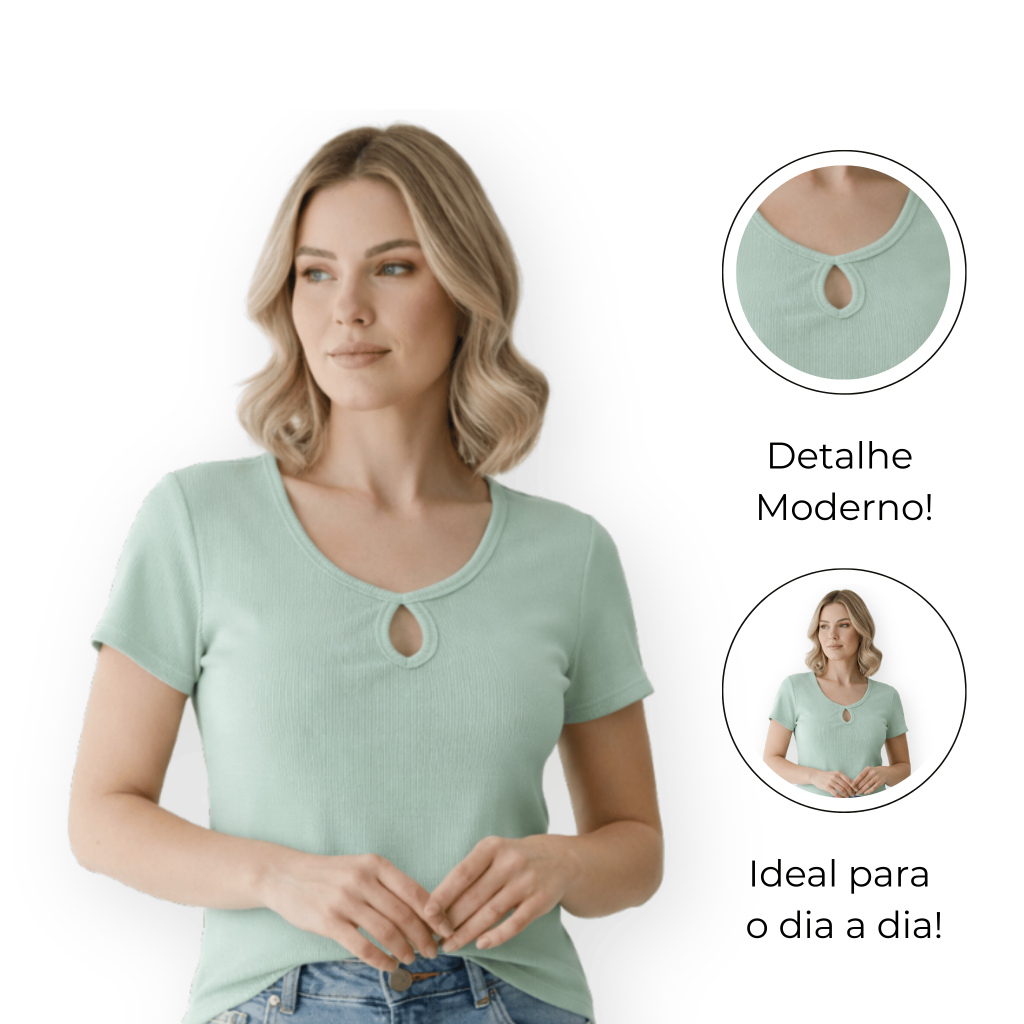 Kit 2 Peças Blusa Feminina Decote Gota Canelada Ribana Moda Camiseta Gringa