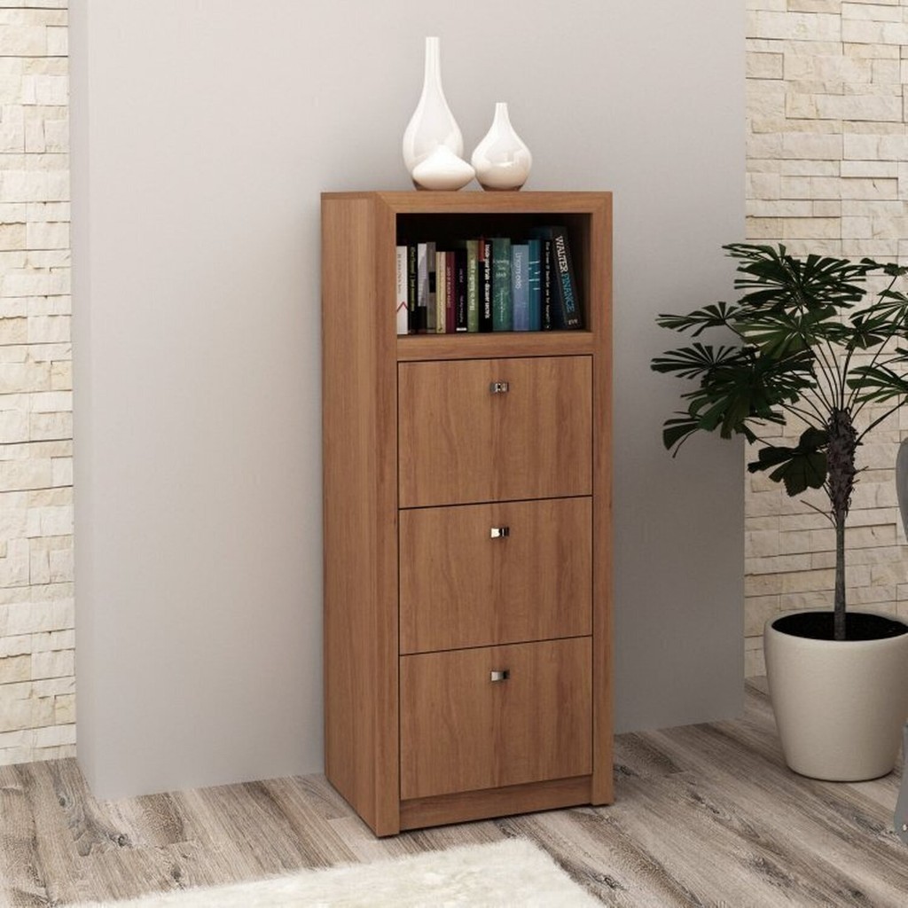 O Balcão para Escritório 2 Portas ME4103 dispõe de duas portas com dobradiças metálicas e puxadores cromados, além de uma prateleira, oferecendo excelente espaço interno para organização e arquivamento de documentos com beleza e requinte. O Gaveteiro para Pasta Suspensa ME4118 é ideal para organizar seus documentos, pois possui três gavetas espaçosas para pasta suspensa, além disso, um nicho para acomodar objetos ao seu estilo. Garantia: 03 Meses Possui Rodízio: Não Serviço Montagem: 114259443 Ambiente Principal: Escritório Material Principal: MDP Marca: Espresso Móveis Cor: Amendoa Cor do Produto: Amendoa Cor Predominante: Marrom