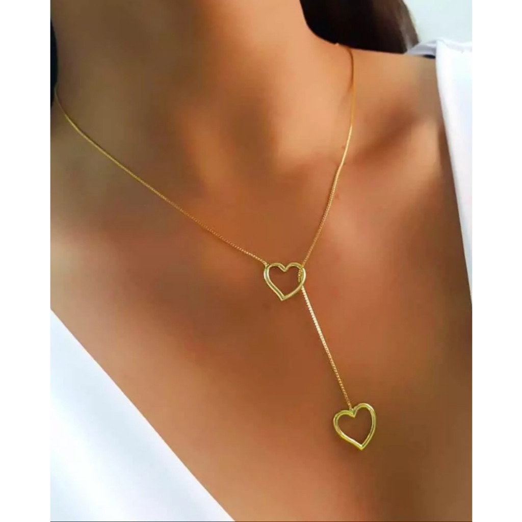 Kit 2 peças com coração duplo vazado + Choker de osso de cobra banhada a ouro 18K ou prata 925