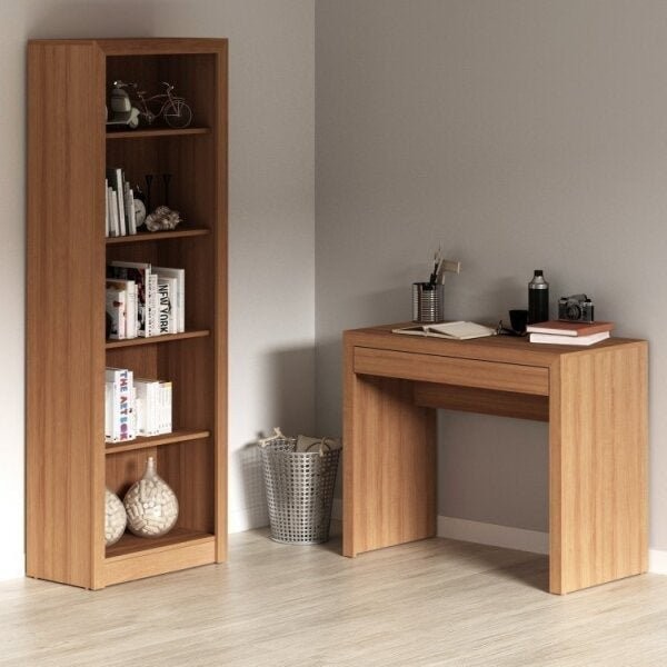 Kit 2 Peças com Escrivaninha Me4107 90cm e Estante 4 Prateleiras Me4104 Amendoa