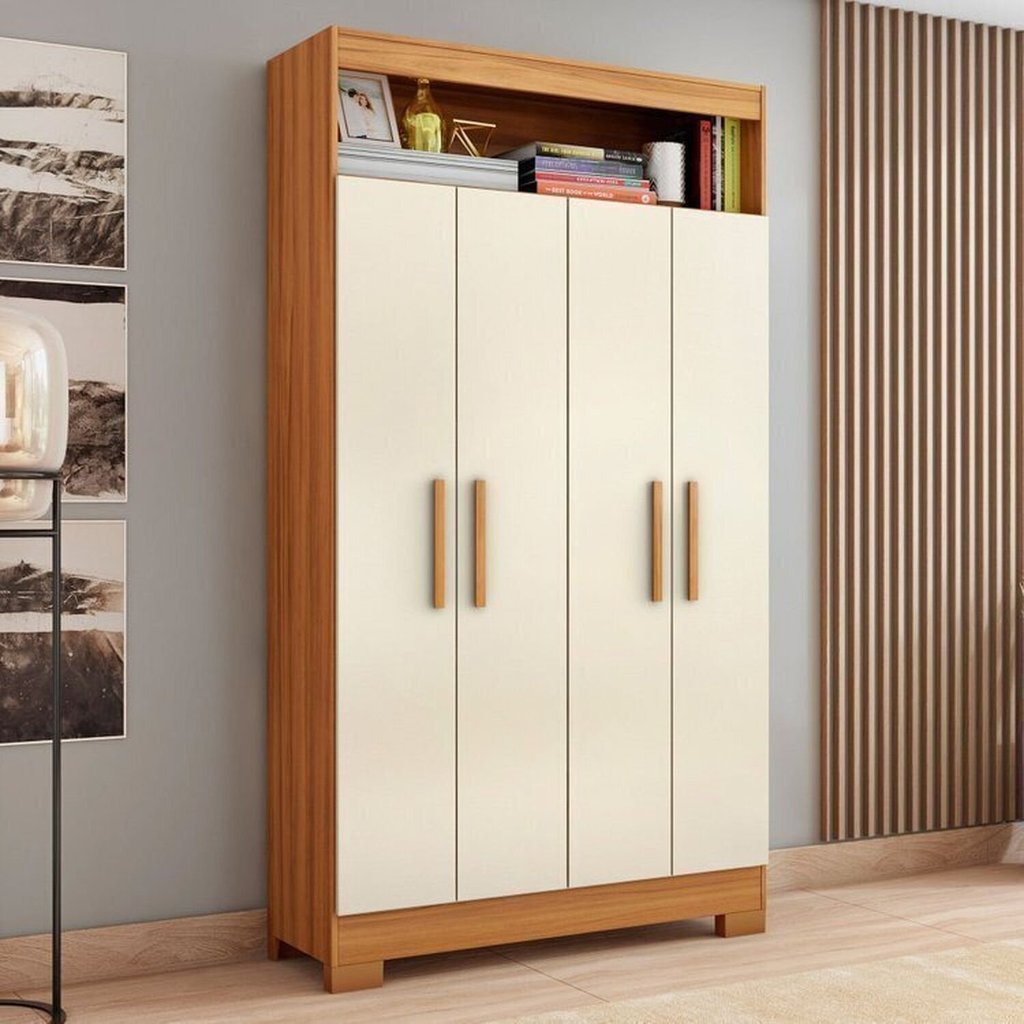Kit 2 Peças com Mesa Escrivaninha e Armário 4 Portas com Nicho Freijó/Off White