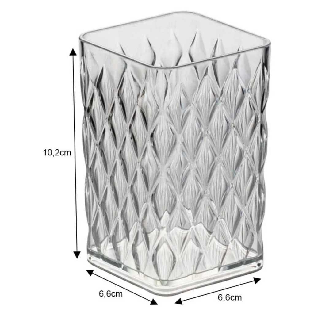A Linha Glamour vem para deixar seu banheiro ou lavabo muito mais lindo e cheio de sofisticação, básico, mas nem tanto! As peças são versáteis e possibilitam diversas formas de uso do casual ao chique. O kit é composto por 2 peças: 1 porta escova e 1 Saboneteira BENEFÍCIOS - O Porta escova também pode ser usado como porta pincel de maquiágem CARACTERÍSTICAS DO PORTA ESCOVA Material: Poliestireno Peso Aproximado: 53g Altura: 10,2cm Largura: 6,5cm