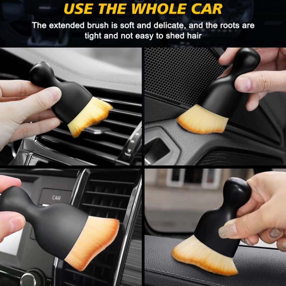 Escova de Limpeza de Cerdas Macias — Para fendas do teclado e cantos internos do carro Descrição do produto Escova de limpeza para carro: adequada para todos os cantos e recantos do veículo. Limpa o painel de instrumentos, ar condicionado, saídas de ar, console central, apoio de braço e restos de comida nas fendas dos assentos. Cerdas macias: feita de cerdas sintéticas macias, limpa delicadamente os acessórios internos do carro e remove poeira rapidamente. Mesmo com uso repetido, as cerdas continuam duráveis e sem cheiro. Pode ser usada seca ou úmida. Design exclusivo: cabeça em formato curvo oblíquo, alcança todos os cantos do carro para manter o painel limpo. Alça com ranhuras antiderrapantes, confortável de segurar. Não deixa arranhões em superfícies delicadas. Leve e portátil, com capa protetora ecológica. Ideal para vidro, pintura e superfícies polidas. Aplicação versátil: limpeza precisa de peças internas e externas do carro, como assentos de couro e painéis de porta de plástico. Também pode ser usada para limpeza interna de barcos, reboques e motocicletas, sem riscar superfícies delicadas. Especificação Nome do produto: Escova de limpeza de cerdas macias Material das cerdas: Nylon Material da alça: Plástico Dimensões: cerca de 9,7x7x5,2 cm Vantagens do produto Cerdas macias, delicadas e suaves. Obrigado pela sua preferência! Desejamos-lhe um bom dia e boas compras!