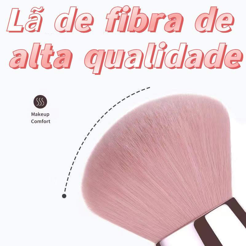 Kit 2 Peças Pincel De Maquiagem Facial Pó Blush Base Rosa Kabuki