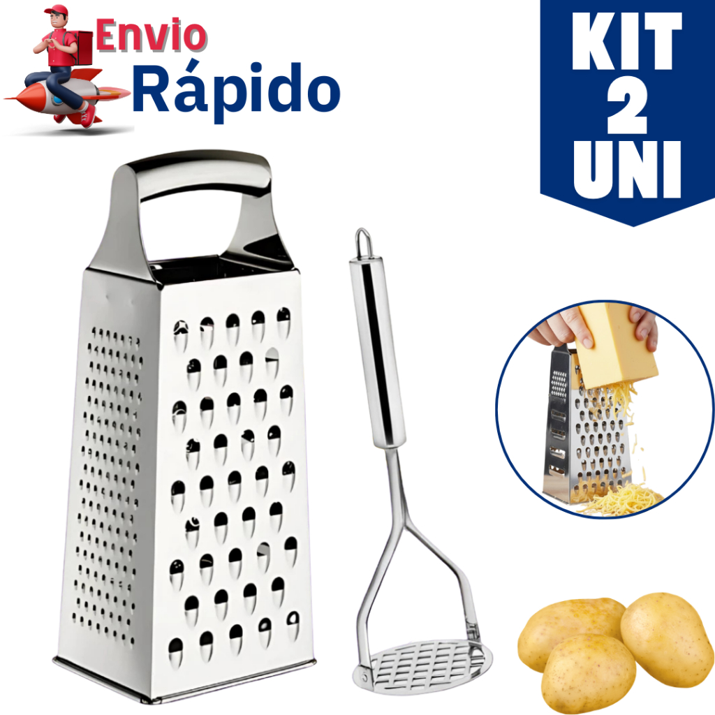 Kit 2 Peças Ralador 4 Faces Inox + Espremedor de Batata Rala Queijo Espremedor de Batata