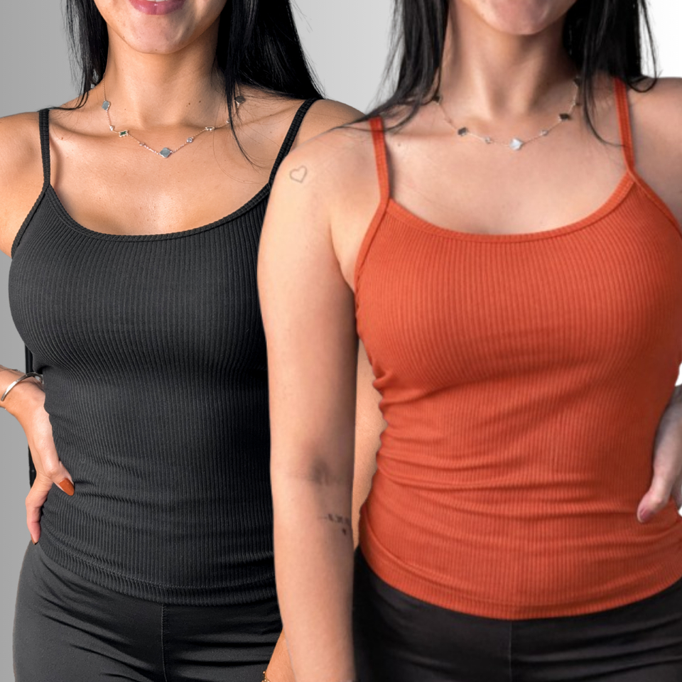 KIT 2 PEÇAS REGATA FEMININA ALCINHA CANELADA - MODA VERÃO E ACADEMIA