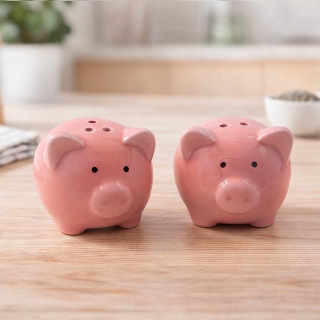 Kit 2 Peças Saleiro e Pimenteiro de Porcelana Porquinho Rosa - Cozinha