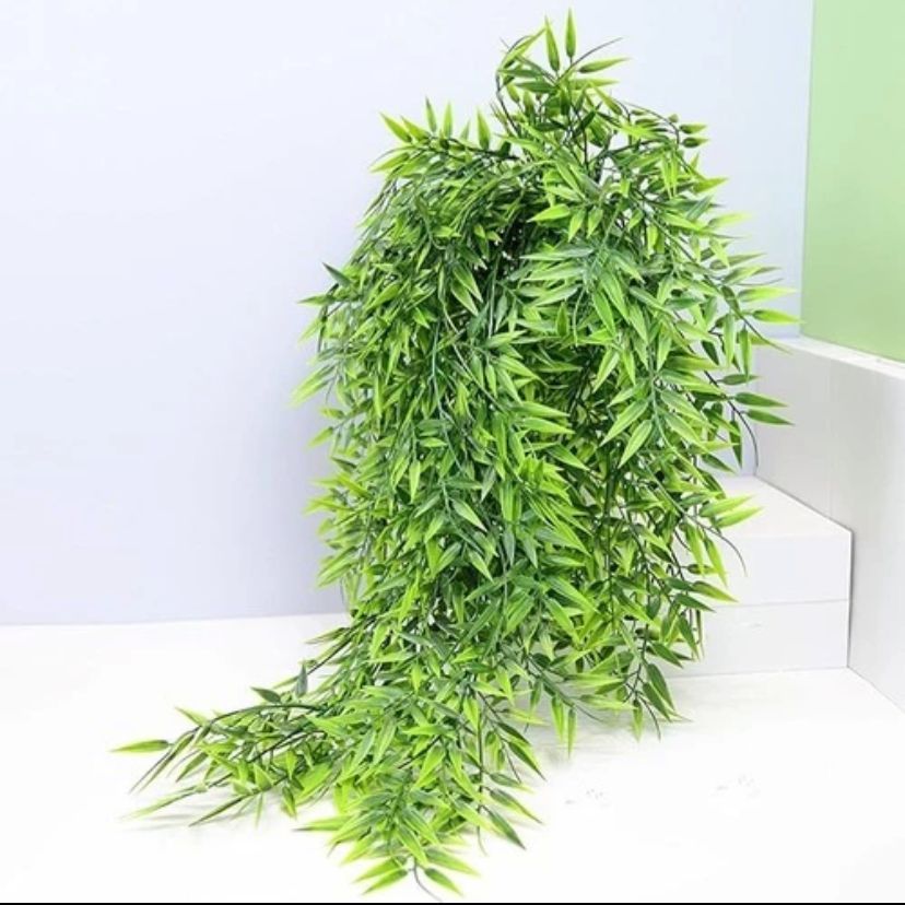 Kit 2 Pendente De Bambu Planta Artificial Folhas De Bambu Caída Decorativa