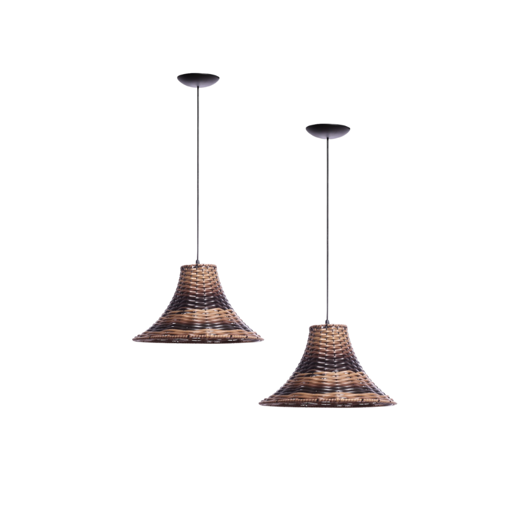 Kit 2 Pendente Lustre Luminária Junco Rustico Chapéu Chinês