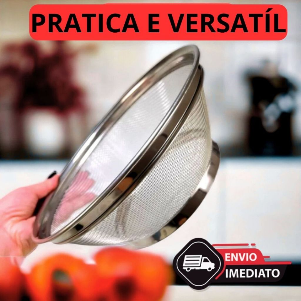 Alimentos 📦 ENVIO IMEDIATO | PRODUTO DE ALTA QUALIDADE Mais praticidade e eficiência na sua cozinha! O Kit 2 Peneiras + Cesta Inox é perfeito para frituras, escorrer massas, lavar frutas e verduras, coar líquidos e muito mais. Feito em aço inox de alta resistência, é durável, fácil de limpar e ideal para uso diário. 🚀 Vantagens do kit: ✅ Peneiras multiuso – ideais para coar, escorrer e peneirar alimentos ✅ Cesta inox resistente – perfeita para frituras e escorrimento rápido ✅ Material durável e higiênico – não enferruja e não solta resíduos ✅ Fácil de limpar e armazenar ✅ Uso doméstico ou profissional 📐 Especificações Técnicas: • Material: Aço inox de alta resistência • Quantidade: 1 peneira + 1 cesta inox • Uso: Frituras, massas, legumes, frutas, líquidos e mais • Cor: Prata metálico (natural do inox) 🛒 Tenha mais praticidade na cozinha! Clique em Comprar Agora e receba com envio rápido e seguro.