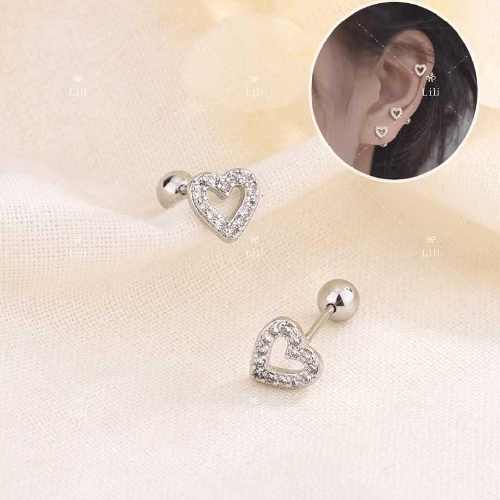 Kit 2 Piercing de Coração orelha Aço inox tragus cartilagem zircão