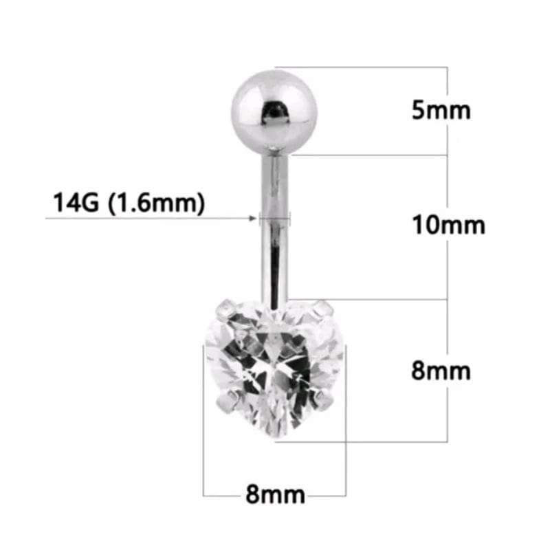 Kit 2 piercing de umbigo com strass pedra zircônia coração aço inoxidável 2 Unidades