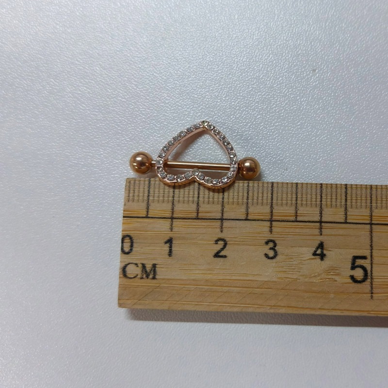 Kit 2 Piercing Mamilos Feminino Aço Inoxidável 316L Coração com Zircôni 16mm/18mm