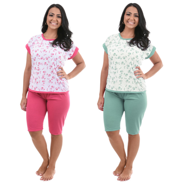 KIT 2 Pijama Pescador Feminino Regata Manga Japonesa Calça Capri Sortidos