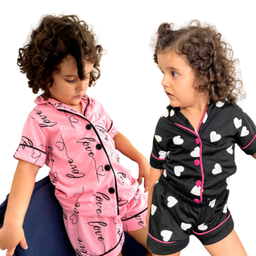 Kit 2 Pijamas Americano Infantil Menina Criança Blusa Short Blogueira Botões Curto Verão Confortável