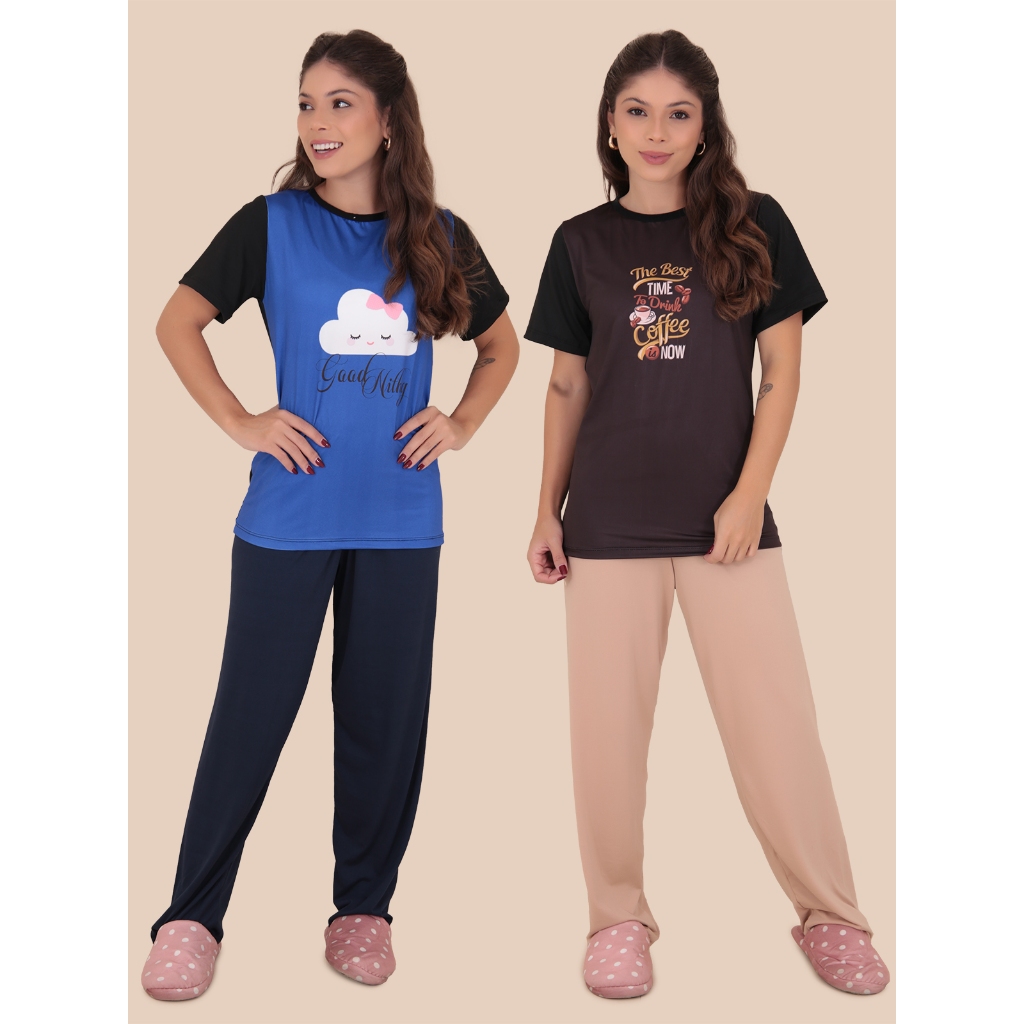 Kit 2 Pijamas Feminino Virginia Manga Curta Suede