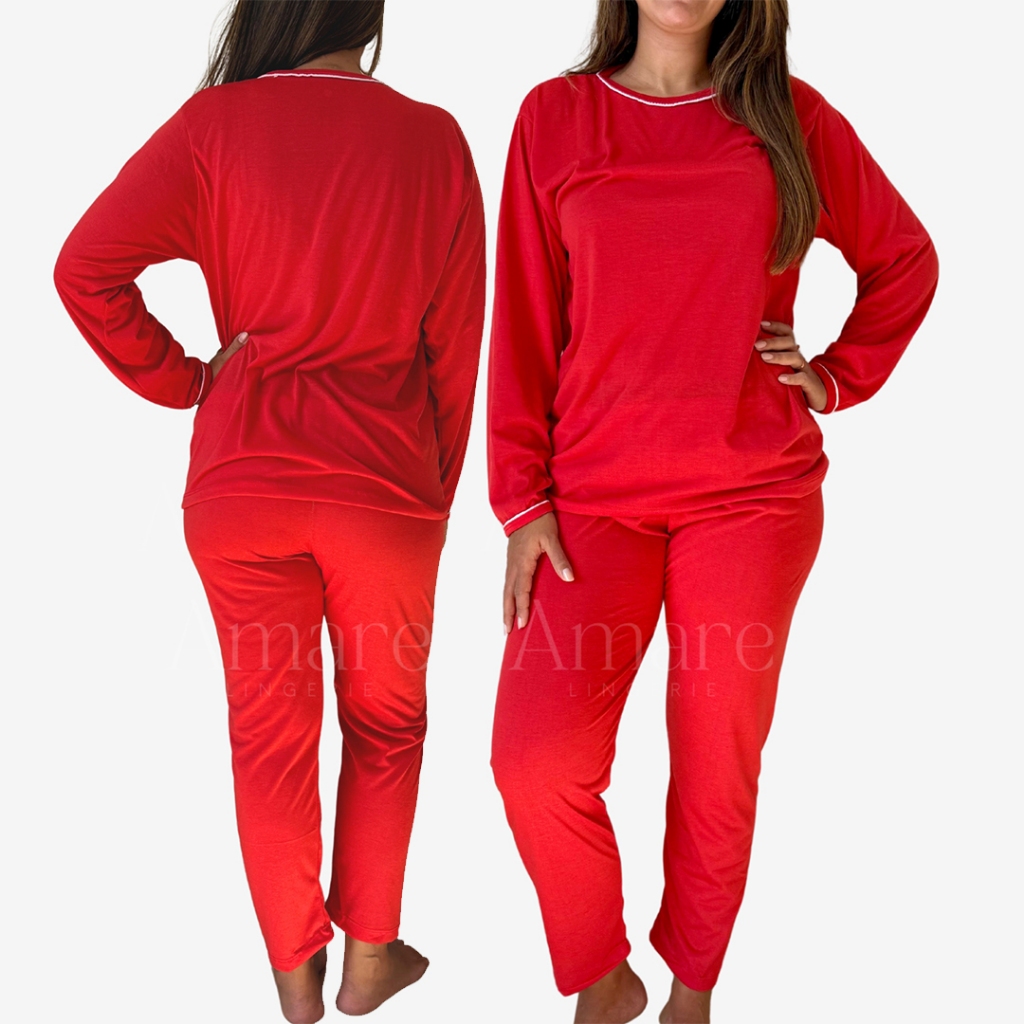 Pijama Feminino de Inverno em Malha | Manga Longa com Detalhes na Gola e Punhos KIT COM 2 UNIDADES CORES SORTIDAS MODELAGEM GRANDE PARA MAIOR CONFORTO Conforto e estilo para suas noites de descanso! Este pijama feminino de inverno é confeccionado em malha macia e leve, perfeito para manter o corpo aquecido sem abrir mão do conforto. O conjunto inclui blusa de manga longa com detalhe contrastante na gola e nos punhos, que traz um toque delicado e moderno, e calça com caimento confortável, ideal para os dias mais frios. 🔸 Tecido: Malha de alta qualidade, suave ao toque 🔸 Detalhes elegantes: Acabamento com viés contrastante na gola e nos punhos 🔸 Cores vibrantes 🔸 Modelagem: Confortável, com ótimo caimento 🔸 Ideal para: Dormir, relaxar em casa ou presentear quem você ama Disponível em vários tamanhos, este pijama é perfeito para quem busca bem-estar com estilo nos dias frios. Garanta já o seu e aproveite o inverno com muito mais conforto! Guia de Tamanhos P (36-38) M (40-42) G (44-46) GG (48-50)