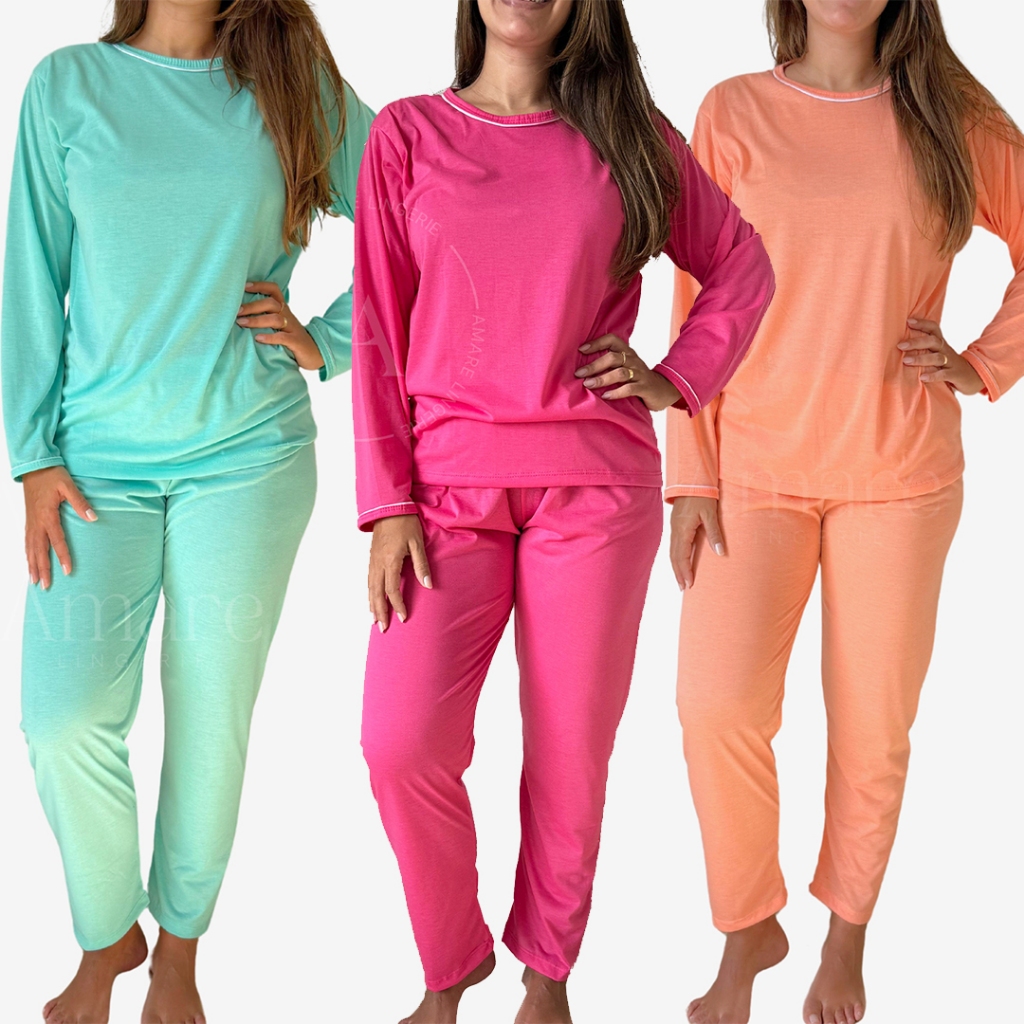 | Kit 2 Pijamas Longo Feminino de Inverno em Malha Premium Cores Lisas este produto | R$ 69,99 | 13% | 4.8/5 | — |