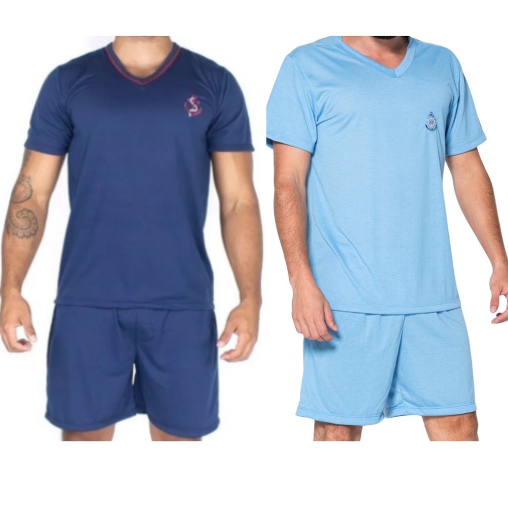 Kit 2 Pijamas Masculino Manga curta Short de Verão Conjunto De Dormir Homem Calor cirurgio