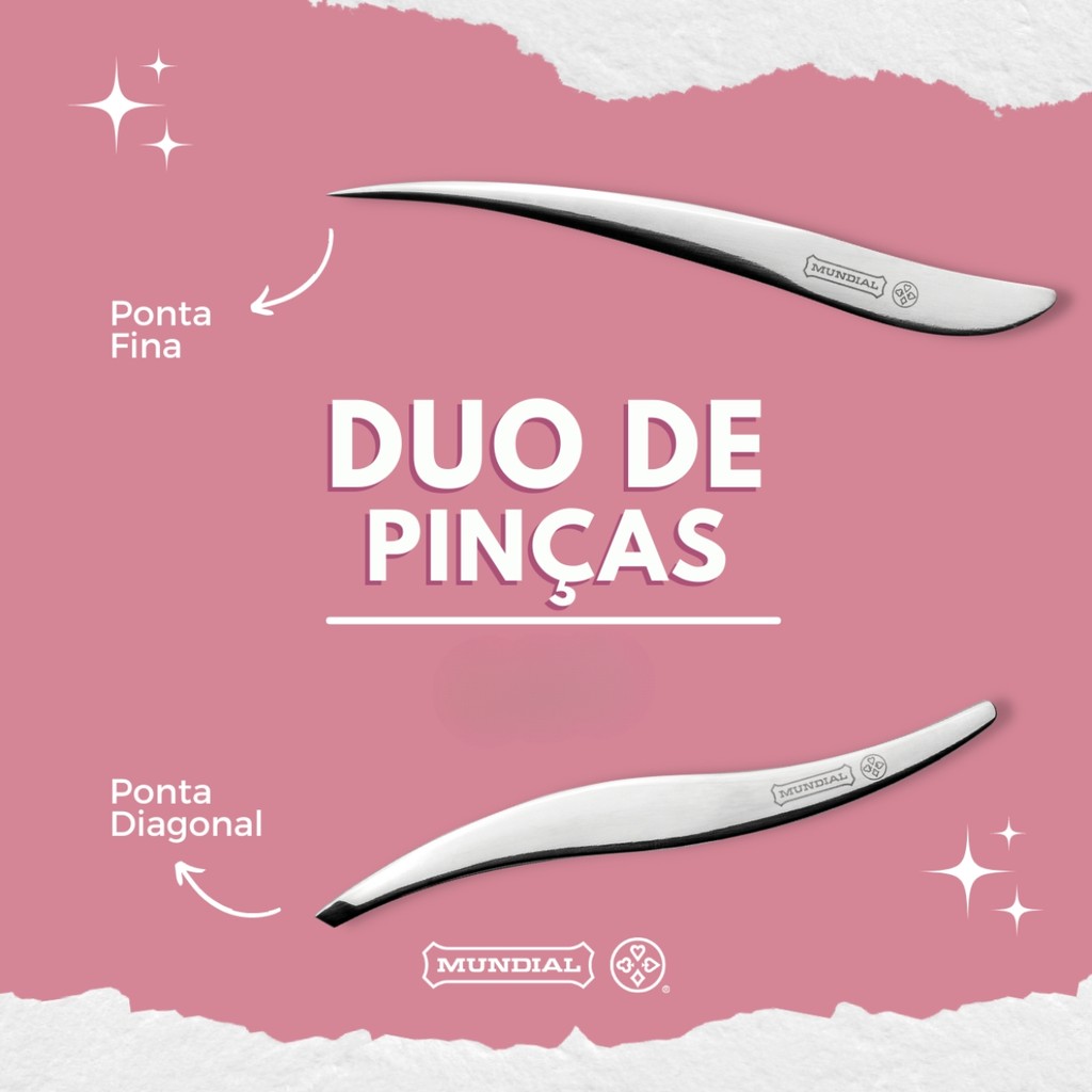Kit 2 Pinças Anatômica Ponta Fina E Diagonal BC391 Mundial