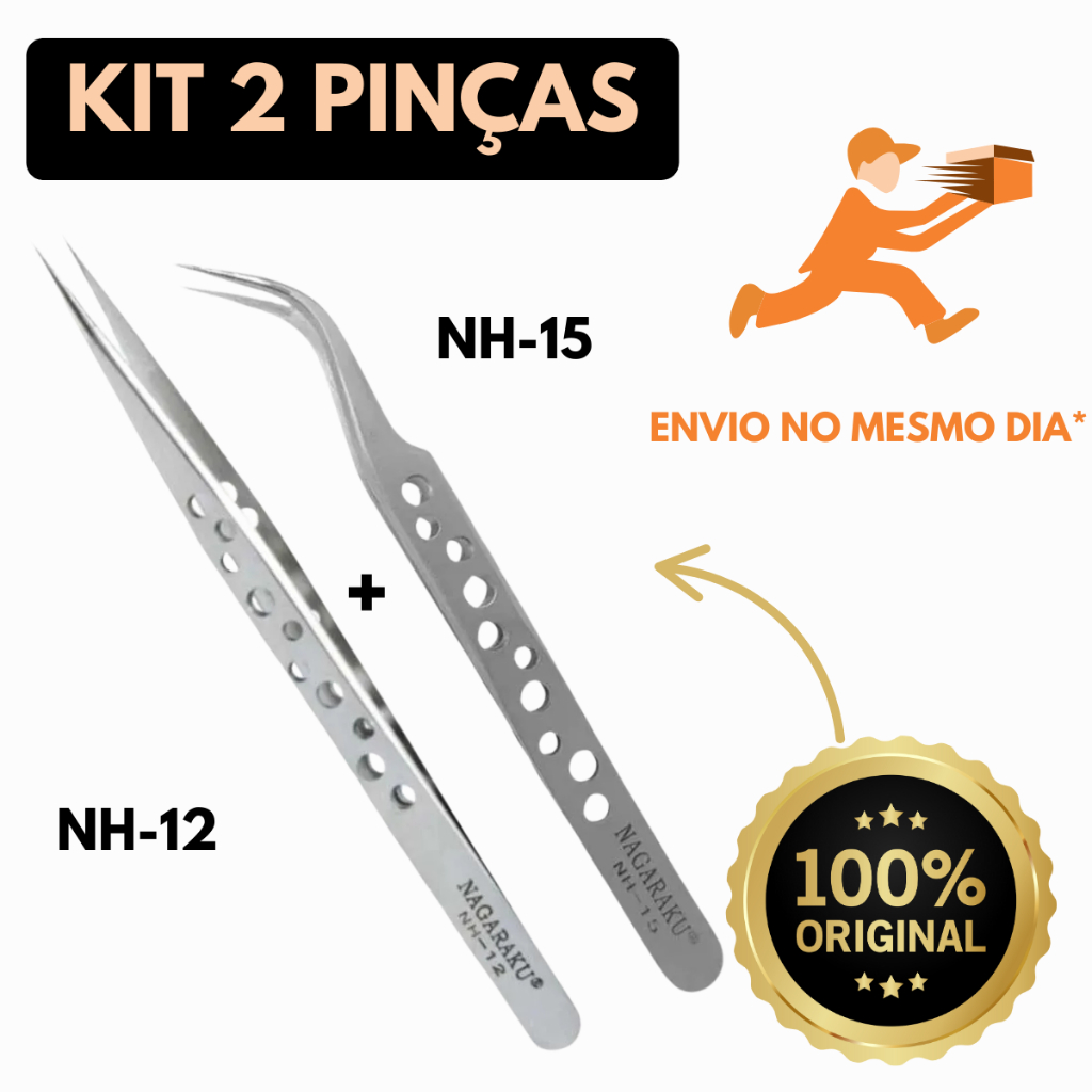 Kit 2 Pinças NAGARAKU Original NH12 + NH15 Extensão de Cílios Curva Reta Profissional Envio Imediato